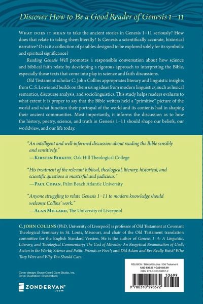 What does it mean to be a good reader of Genesis 1-11? What does it mean to take these ancient stories seriously and how does that relate to taking them literally? Can we even take any of this material seriously? Reading Genesis Well answers these questions and more, promoting a responsible conversation about how science and biblical faith relate by developing a rigorous approach to interpreting the Bible, especially those texts that come into play in science and faith discussions. This unique approach connects the ancient writings of Genesis 1-11 with modern science in an honest and informed way. Old Testament scholar C. John Collins appropriates literary and linguistic insights from C. S. Lewis and builds on them using ideas from modern linguistics, such as lexical semantics, discourse analysis, and sociolinguistics. This study helps readers to evaluate to what extent it is proper to say that the Bible writers held a "primitive" picture of the world, and what function their portrayal of the world and its contents had in shaping the community.