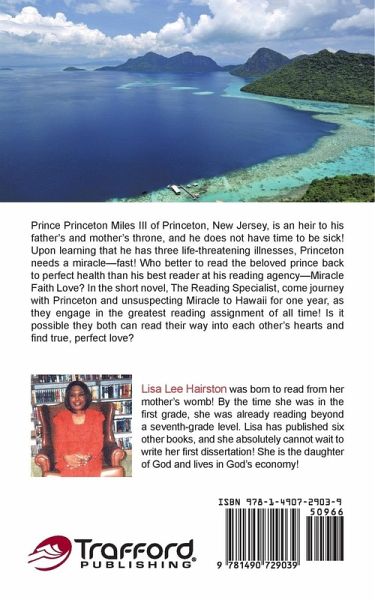 Prince Princeton Miles III of Princeton, New Jersey, is an heir to his father's and mother's throne, and he does not have time to be sick! Upon learning that he has three life-threatening illnesses, Princeton needs a miracle-fast! Who better to read the beloved prince back to perfect health than his best reader at his reading agency-Miracle Faith Love? In the short novel, The Reading Specialist, come journey with Princeton and unsuspecting Miracle to Hawaii for one year, as they engage in the greatest reading assignment of all time! Is it possible they both can read their way into each other's hearts and find true, perfect love?