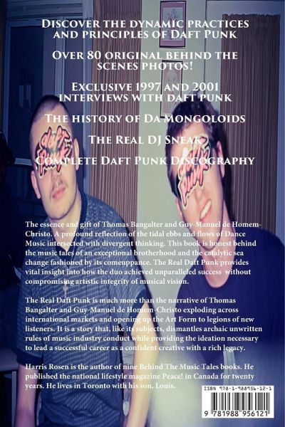 The Real Daft Punk embodies the dynamic practices and principles that launched Daft Punk to superstardom presenting the essence and gift of Thomas Bangalter and Guy-Manuel de Homem-Christo. A profound reflection of the tidal ebbs and flows of Dance Music intersected with divergent thinking. This book is honest behind the music tales of an exceptional brotherhood and the catalytic sea change fashioned by its comeuppance. Over two exclusive interviews captured in the age of Homework and the gestation period leading up to and including the release of Discovery, The Real Daft Punk provides vital insight into how the duo achieved unparalleled success without compromising artistic integrity or musical vision. The Real Daft Punk answering the questions who is Daft Punk? What is their purpose? Where did their unique sound originate? When did they begin to devise different music? Why do they prefer to remain anonymous? And how do they create tracks? The book chronicles the rise of House and Techno. In the words of its co-conspirators, drawing from talks with Kevin Saunderson, Arthur Baker, Byron Stingily, Moby, 808 State, Underworld, Giorgio Moroder, Stacey Pullen and Cajmere/Green Velvet, in the same time frame as the rise of Daft Punk. Adding the revealing tales of DJ Sneak and the notorious Da Mongoloids crew, who drew from the same wellspring of inspiration and included Daft Punk. The Real Daft Punk is much more than the narrative of Thomas Bangalter and Guy-Manuel de Homem-Christo exploding across international markets and opening up the Art Form to legions of new listeners. It is a story that, like its subjects, dismantles archaic unwritten rules of music industry conduct while providing the ideation necessary to lead a successful career as a confident creative with a rich legacy.