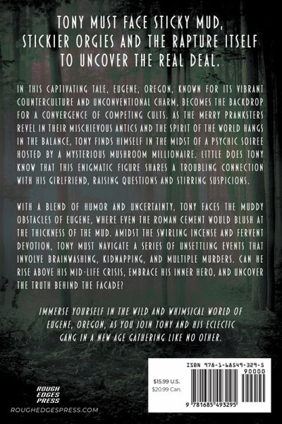 Tony must face sticky mud, stickier orgies and the Rapture itself to uncover the Real Deal. In this captivating tale, Eugene, Oregon, known for its vibrant counterculture and unconventional charm, becomes the backdrop for a convergence of competing cults. As the Merry Pranksters revel in their mischievous antics and the spirit of the world hangs in the balance, Tony finds himself in the midst of a psychic soiree hosted by a mysterious mushroom millionaire. Little does Tony know that this enigmatic figure shares a troubling connection with his girlfriend, raising questions and stirring suspicions. With a blend of humor and uncertainty, Tony faces the muddy obstacles of Eugene, where even the Roman cement would blush at the thickness of the mud. Amidst the swirling incense and fervent devotion, Tony must navigate a series of unsettling events that involve brainwashing, kidnapping, and multiple murders. Can he rise above his mid-life crisis, embrace his inner hero, and uncover the truth behind the facade? Immerse yourself in the wild and whimsical world of Eugene, Oregon, as you join Tony and his eclectic gang in a New Age gathering like no other.