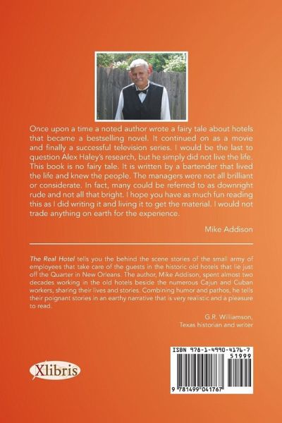 Once upon a time a noted author wrote a fairy tale about hotels that became a bestselling novel. It continued on as a movie and finally a successful television series. I would be the last to question Alex Haley's research, but he simply did not live the life. This book is no fairy tale. It is written by a bartender that lived the life and knew the people. The managers were not all brilliant or considerate. In fact, many could be referred to as downright rude and not all that bright. I hope you have as much fun reading this as I did writing it and living it to get the material. I would not trade anything on earth for the experience. Mike Addison The Real Hotel tells you the behind the scene stories of the small army of employees that take care of the guests in the historic old hotels that lie just off the Quarter in New Orleans. The author, Mike Addison, spent almost two decades working in the old hotels beside the numerous Cajun and Cuban workers, sharing their lives and stories. Combining humor and pathos, he tells their poignant stories in an earthy narrative that is very realistic and a pleasure to read. G.R. Williamson, Texas historian and writer