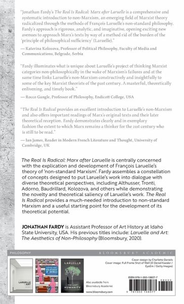 The Real is Radical is centrally concerned with the explication and development of François Laruelle's theory of "non-standard Marxism." Fardy assembles a constellation of concepts designed to put Laruelle's work into dialogue with diverse theoretical perspectives, including Althusser, Tronti, Adorno, Baudrillard, Kolozova and others while demonstrating the novelty and theoretical saliency of Laruelle's work. The Real is Radical provides a much-needed introduction to non-standard Marxism and a useful starting point for the development of its theoretical potential.