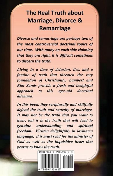 Divorce and remarriage are perhaps two of the most controversial doctrinal topics of our time. With many on each side claiming that they are right, it is difficult sometimes to discern the truth. Living in a time of delusion, lies, and a famine of truth that threaten the very foundation of Christianity, Lambert and Kim Sands provide a fresh and insightful approach to this age-old doctrinal dilemma. In this book, they scripturally and skillfully defend the truth and sanctity of marriage. It may not be the truth that you want to hear, but it is the truth that will lead to genuine understanding and spiritual freedom. Written delightfully in layman's language, it is a must read for the minister of God as well as the inquisitive heart that yearns to know the truth.