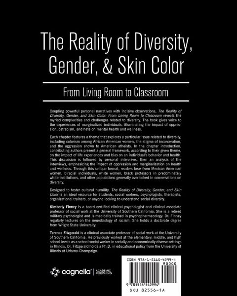 Coupling powerful personal narratives with incisive observations, The Reality of Diversity, Gender, and Skin Color: From Living Room to Classroom reveals the myriad complexities and challenges related to diversity. The book gives voice to the experiences of marginalized individuals, illuminating the impact of oppression, ostracism, and hate on mental health and wellness. Each chapter features a theme that explores a particular issue related to diversity, including colorism among African American women, the stigma of incarceration, and the aggression shown to American atheists. In the chapter introduction, contributing authors present a general framework, according to their given theme, on the impact of life experiences and bias on an individual's behavior and health. This discussion is followed by personal interviews, then an analysis of the interviews, emphasizing the impact of oppression and marginalization on health and wellness. Through this unique format, readers hear from Mexican American women, biracial individuals, white women, black professors in predominately white institutions, and other populations generally overlooked in conversations on diversity. Designed to foster cultural humility, The Reality of Diversity, Gender, and Skin Color is an ideal resource for students, social workers, psychologists, therapists, organizational trainers, or anyone looking to understand social diversity. Kimberly Finney is a board certified clinical psychologist and clinical associate professor of social work at the University of Southern California. She is a retired military psychologist and is medically trained in psychopharmacology. Dr. Finney regularly lectures on the neurobiology of racism and serves as a consultant and analyst on race-related issues in working with African Americans. Dr. Finney holds a M.S. in organizational development and doctorate degree in clinical psychology from Wright State University. Terence Fitzgerald is a clinical associate professor of social work at the University of Southern California, a race scholar, and a policy analyst. He previously worked at the elementary, middle, and high school levels as a school social worker in racially and economically diverse settings in Illinois. Dr. Fitzgerald holds a Ph.D. in educational policy from the University of Illinois at Urbana-Champaign.