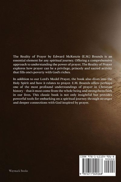The Reality of Prayer by Edward McKenzie (E.M.) Bounds is an essential element for any spiritual journey. Offering a comprehensive approach to understanding the power of prayer, The Reality of Prayer explores how prayer can be a privilege, princely and sacred activity that fills one's poverty with God's riches. In addition to our Lord's Model Prayer, the book also dives into the Holy Spirit and how it relates to prayer. E.M. Bounds offers perhaps one of the most profound understandings of prayer in Christian history - that it must come from the whole being and strengthens faith in our lives. This classic book is not only insightful but provides powerful tools for embarking on a spiritual journey through stronger and deeper connections with God inspired by prayer.