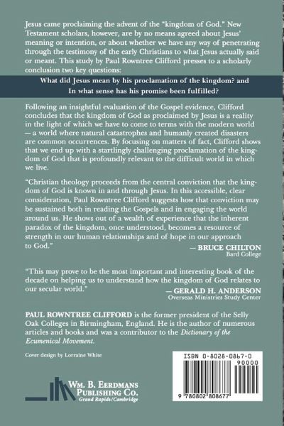 Jesus came proclaiming the advent of the "kingdom of God." New Testament scholars, however, are by no means agreed about Jesus' meaning or intention, or about whether we have any way of penetrating through the testimony of the early Christians to what Jesus actually said or meant. This study by Paul Rowntree Clifford presses to a scholarly conclusion two key questions: What did Jesus mean by his proclamation of the kingdom? And in what sense has his promise been fulfilled? Following an insightful evaluation of the Gospel evidence, Clifford concludes that the kingdom of God as proclaimed by Jesus is a reality in the light of which we have come to terms with the modern world — a world where natural catastrophes and humanly created disasters are common occurrences. By focusing on matters of fact, Clifford shows that we end up with a startlingly challenging proclamation of the kingdom of God that is profoundly relevant to the difficult world in which we live.
