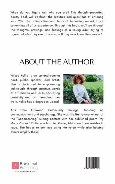 When do you figure out who you are? This thought-provoking poetry book will confront the realities and questions of entering your 20s. The anticipation and fears of becoming an adult are something all of us experience. Through this book, you'll go through the thoughts, cravings, and feelings of a young adult trying to figure out who they are. However, will they ever know the answer?