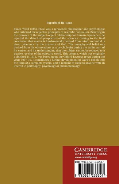 Based upon the Gifford Lectures 1907 10, this 1911 volume develops renowned philosopher and psychologist James Ward's beliefs into a complete system.