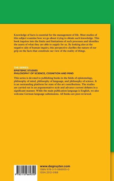 Knowledge of facts is essential for the management of life. Most studies of the subject examine how we go about trying to obtain it; they describe the processes and proceedings of rational inquiry. The present work steps back from this to inquire into the limits and limitations of such processes and to identify the assets and the limitabilities of what they are able to supply for us. It examines how knowledge of facts is secured and consolidated as such, and what the resulting information can and cannot provide. It argues that the unavoidable incompleteness of our factual information also endows it with an element of incorrectness. By looking also at the negative side of human inquiry the book's perspective clarifies the nature of our grip on the facts that constitute our view of the reality of things.