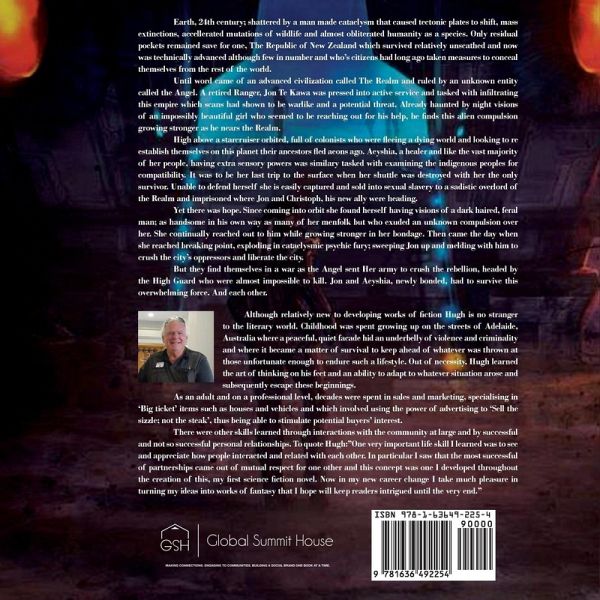 Earth, 24th century; shattered by a man made cataclysm that caused tectonic plates to shift, mass extinctions, accelerated mutations of wildlife and almost obliterated humanity as a species. Only residual pockets remained save for one, The Republic of New Zealand which survived relatively unscathed and now was technically advanced although few in number and who's citizens had long ago taken measures to conceal themselves from the rest of the world. Until word came of an advanced civilization called The Realm and ruled by an unknown entity called the Angel. A retired Ranger, Jon Te Kawa was pressed into active service and tasked with infiltrating this empire which scans had shown to be warlike and a potential threat. Already haunted by night visions of an impossibly beautiful girl who seemed to be reaching out for his help, he finds this alien compulsion growing stronger as he nears the Realm. High above a starcruiser orbited, full of colonists who were fleeing a dying world and looking to re establish themselves on this planet their ancestors fled aeons ago. Aeyshia, a healer and like the vast majority of her people, having extra sensory powers was similary tasked with examining the indigenous peoples for compatibility. It was to be her last trip to the surface when her shuttle was destroyed with her the only survivor. Unable to defend herself she is easily captured and sold into sexual slavery to a sadistic overlord of the Realm and imprisoned where Jon and Christoph, his new ally were heading. Yet there was hope. Since coming into orbit she found herself having visions of a dark haired, feral man; as handsome in his own way as many of her menfolk but who exuded an unknown compulsion over her. She continually reached out to him while growing stronger in her bondage. Then came the day when she reached breaking point, exploding in cataclysmic psychic fury; sweeping Jon up and melding with him to crush the city's oppressors and liberate the city. But they find themselves in a war as the Angel sends Her army to crush the rebellion, headed by the High Guard who were almost impossible to kill. Jon and Aeyshia, newly bonded, had to survive this overwhelming force. And each other.