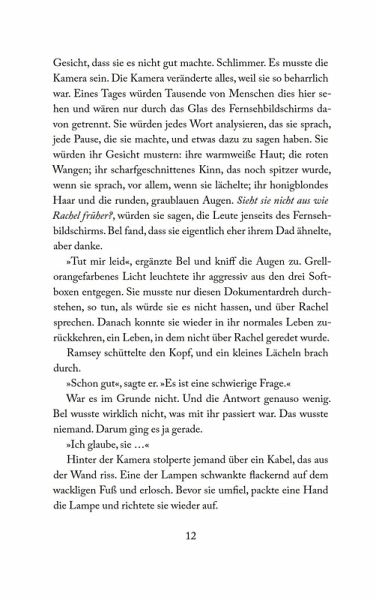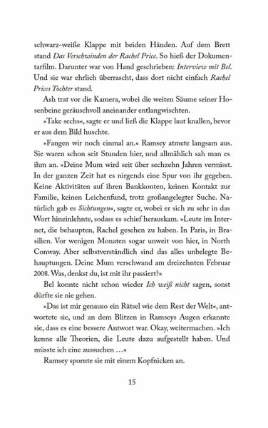 Die Geschichte klingt ebenfalls sehr vielversprechend: Vor 16 Jahren verschwand Bells Mutter Rachel aus mysteriöse Weise. Bel war die einzige Zeugin, doch mit ihren zwei Jahren viel zu klein, um sich an irgendetwas zu erinnern. Die Geschichte vom Kleinkind, das bei laufendem Motor im Tiefschnee zurückgelassen wurde und von ihrer Mutter, die seitdem als vermisst gilt, erregt in dem kleinen Ort noch immer Aufmerksamkeit. Auch bei einem englischen Regisseur, der eine True-Crime-Dokumentation über den Fall drehen will. Er spricht mit allen Beteiligten: Bel, ihrem Vater Charlie, der damals sogar wegen Mordes verdächtigt wurde, obwohl es keine Leiche gab, mit Bels Familie - und mit Rachel. Denn mitten in den Dreharbeiten steht sie plötzlich wieder vor der Tür, in den gleichen Sachen, in denen sie damals verschwand und Verletzungen an den Fußknöcheln. Sie erzählt, sie wäre vor 16 Jahren entführt worden, die ganze Zeit von einem Mann festgehalten worden, der sie jetzt allerdings freigelassen hätte. Obwohl alle sich zu freuen scheinen, bleibt Bel skeptisch, sie ist fest überzeugt, dass ihre Mutter lügen muss. Gemeinsam mit dem Kameramann Ash stellt sie eigene Nachforschungen an und muss sich zunehmend fragen, wem sie eigentlich noch vertrauen kann und ob vielleicht ihr ganzes Leben eine Lüge ist.