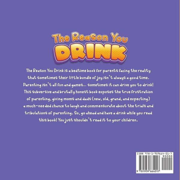 The Reason You Drink is a bedtime book for parents facing the reality that sometimes their little bundle of joy isn't always a good time. Parenting isn't all fun and games... sometimes it can drive you to drink! This subversive and brutally honest book exposes the true frustration of parenting, giving moms and dads (new, old, grand, and expecting) a much-needed chance to laugh and commensurate about the trials and tribulations of parenting. So, go ahead and have a drink while you read this book! You just shouldn't read it to your children.
