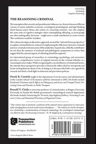 The assumption that rewards and punishments influence our choices between different courses of action underlies economic, sociological, psychological, and legal thinking about human action. Hence, the notion of a reasoning criminal-one who employs the same sorts of cognitive strategies when contemplating offending as they and the rest of us use when making other decisions-might seem a small contribution to crime control. This conclusion would be mistaken. This volume develops an alternative approach, termed the "rational choice perspective," to explain criminal behaviour. Instead of emphasizing the differences between criminals and non-criminals, it stresses some of the similarities. In particular, while the contributors do not deny the existence of irrational and pathological components in crimes, they suggest that the rational aspects of offending should be explored. An international group of researchers in criminology, psychology, and economics provide a comprehensive review of original research on the criminal offender as a reasoning decision maker. While recognizing the crucial influence of situational factors, the rational choice perspective provides a framework within which to incorporate and locate existing theories about crime. In doing so it also provides both a new agenda for research and sheds a fresh light on deterrent and prevention policies.
