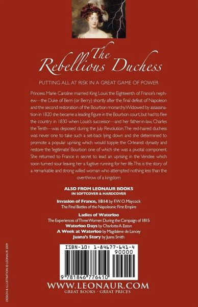 Putting all at risk in a great game of power Princess Marie Caroline married King Louis the Eighteenth of France's nephew-the Duke of Berri (or Berry) shortly after the final defeat of Napoleon and the second restoration of the Bourbon monarchy. Widowed by assassination in 1820 she became a leading figure in the Bourbon court, but had to flee the country in 1830 when Louis's successor-and her father-in-law, Charles the Tenth-was deposed during the July Revolution. The red-haired duchess was never one to take such a set-back lying down and she determined to promote a popular uprising which would topple the Orleanist dynasty and restore the 'legitimate' Bourbon one of which she was a pivotal component. She returned to France in secret to lead an uprising in the Vendee which soon turned sour leaving her a fugitive running for her life. This is the story of a remarkable and strong willed woman who attempted nothing less than the overthrow of a kingdom.