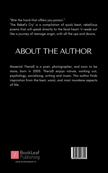 """"""Bite the hand that offers you poison."""" 'The Rebel's Cry' is a compilation of quick beat, rebellious poems that will speak directly to the feral heart. It reads out like a journey of teenage angst, with all the ups and downs.""