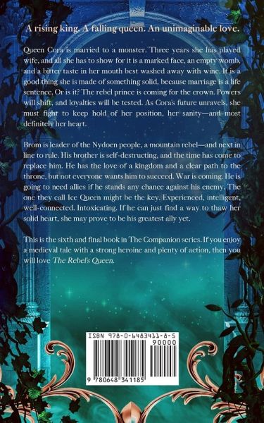 A rising king. A falling queen. An unimaginable love. Queen Cora is married to a monster. Three years she has played wife, and all she has to show for it is a marked face, an empty womb, and a bitter taste in her mouth best washed away with wine. It is a good thing she is made of something solid, because marriage is a life sentence. Or is it? The rebel prince is coming for the crown. Powers will shift, and loyalties will be tested. As Cora's future unravels, she must fight to keep hold of her position, her sanity-and most definitely her heart. Brom is leader of the Nydoen people, a mountain rebel-and next in line to rule. His brother is self-destructing, and the time has come to replace him. He has the love of a kingdom and a clear path to the throne, but not everyone wants him to succeed. War is coming. He is going to need allies if he stands any chance against his enemy. The one they call Ice Queen might be the key. Experienced, intelligent, well-connected. Intoxicating. If he can just find a way to thaw her solid heart, she may prove to be his greatest ally yet. This is the sixth and final book in The Companion series. If you enjoy a medieval tale with a strong heroine and plenty of action, then you will love The Rebel's Queen. Trigger warning: This book contains violence and dark themes.