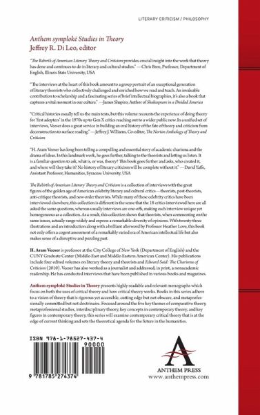 A group of homogeneous interviews with contemporary literary and cultural theorists All the interviews are completed. The same ten questions were addressed to all the interviewees. The result is a homogeneous volume unlike most other interview projects.