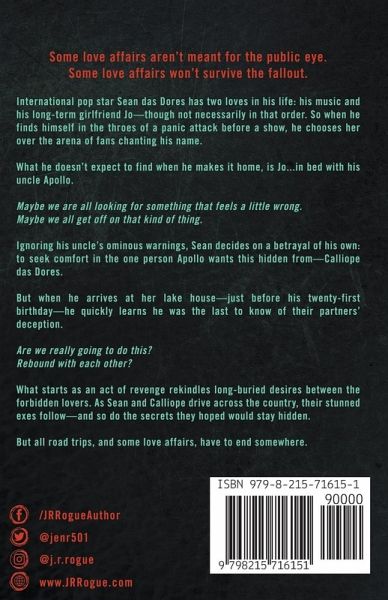 Heartwrenching and gorgeous and so incredibly engaging. --New York Times, Wall Street Journal, and USA Today Bestselling Author, Laurelin Paige "Some love affairs aren't meant for the public eye. Some love affairs won't survive the fallout." International pop star Sean das Dores has two loves in his life: his music and his long-term girlfriend Jo-though not necessarily in that order. So when he finds himself in the throes of a panic attack before a show, he chooses her over the arena of fans chanting his name. What he doesn't expect to find when he makes it home, is Jo...in bed with his uncle Apollo. "Maybe we are all looking for something that feels a little wrong. Maybe we all get off on that kind of thing." Ignoring his uncle's ominous warnings, Sean decides on a betrayal of his own: to seek comfort in the one person Apollo wants this hidden from-Calliope das Dores. But when he arrives at her lake house-just before his twenty-first birthday-he quickly learns he was the last to know of their partners' deception. "Are we really going to do this? Rebound with each other?" What starts as an act of revenge rekindles long-buried desires between the forbidden lovers. As Sean and Calliope drive across the country, their stunned exes follow-and so do the secrets they hoped would stay hidden. But all road trips, and some love affairs, have to end somewhere.
