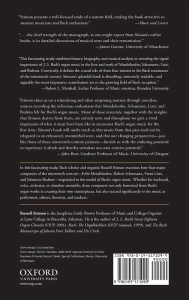In this penetrating study, Russell Stinson explores how four of the greatest composers of the nineteenth century-Felix Mendelssohn, Robert Schumann, Franz Liszt, and Johannes Brahms-responded to the model of Bach's organ music. The author shows that this quadrumvirate not only borrowed from Bach's organ works in creating their own masterpieces, whether for keyboard, voice, orchestra, or chamber ensemble, but that they also reacted significantly to the music as