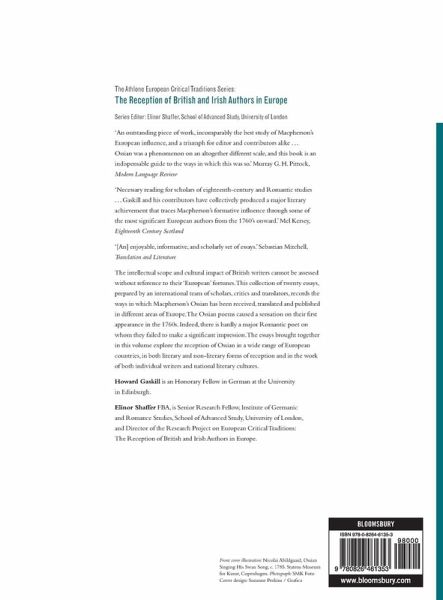 James Macpherson's Poems of Ossian, said to be translations from the Gaelic of a third-century bard, caused a sensation on their first appearance in the early 1760s. Contrary to the impression often conveyed in literary histories, enthusiasm for the poetry of the 'Homer of the North' cannot be dismissed as a short-lived fad, for its appeal lasted a century or more, both at home and abroad. There is hardly a major Romantic poet on whom it failed to make a significant impact. In the words of Sir Walter Scott, it succeeded in "giving a new tone ot poetry throughout all Europe" and its influence was ubiquitous, from Poland to Portugal, from Paris to Prague. The essays brought together here consider the reception of Ossian in England, Scotland, Wales and Ireland, as well as in a wide range of European countries. In some the focus is on individual writers (for instance, Goethe, Schiller, Chateaubriand, Espronceda), in others there is a broader sweep and a survey of reception in a national literary culture is offered (for instance, Hungary, Russia, Sweden). One of the two essays on Ossian in Italy at last gives Macpherson's influential epigone, John Smith, his due. Consideration is also given to Ossian's significance for the rise of historicism, and to non-literary forms of reception in music and art. Series Editor: Dr Elinor Shaffer FBA, Institute of Germanic & Romance Studies, School of Advanced Study, University of London Contributors: Howard Gaskill, University of Edinburgh Dafydd Moore, University of Plymouth Donald Meek, University of Edinburgh Mary-Ann Constantine, University of Wales Mícheál Mac Craith, University of Galway Joep Leerssen, University of Amsterdam Colin Smethurst, University of Glasgow Sandro Jung, University of Wales, Lampeter Caitríona Ó Dochartaigh, Dublin Institute for Advanced Studies Wolf Gerhard Schmidt, University of Saarbrücken Peter Graves, University of Sweden James Porter, University of Aberdeen Gabriella Hartvig, University of Pécs Nina Taylor-Terlecka, Oxford, UK Peter France, University of Edinburgh Enrico Mattioda Francesca Broggi-Wüthrich Andrew Ginger Gerald Bär, Aberta University Christopher Smith, Norwich, UK Murdo MacDonald, University of Dundee Reception of Ossian in Europe Review Reception of Ossian in Europe Review 2