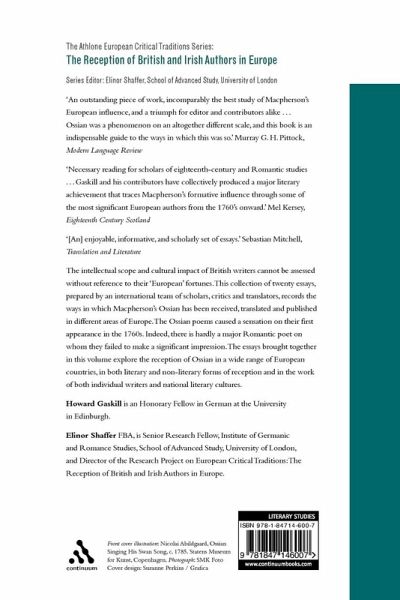 The intellectual scope and cultural impact of British writers cannot be assessed without reference to their European fortunes. This collection of 20 essays, prepared by an international team of scholars, critics and translators, records the ways in which Macpherson's Ossian has been received, translated and published in different areas of Europe. The Ossian poems caused a sensation on their first appearance in the 1760s. Indeed, there is hardly a major Romantic poet on whom they failed to make a significant impression. The essays brought together in this volume explore the reception of Ossian in a wide range of European countries, in both literary and non-literary forms of reception and in the work of both individual writers and national literary cultures.