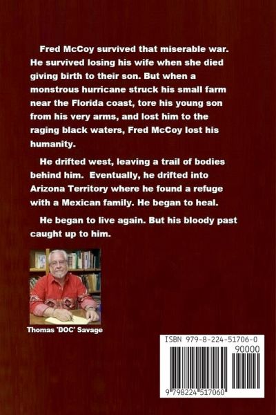 Fred McCoy survived that miserable war. He survived losing his wife when she died giving birth to their son. But when a monstrous hurricane struck his small farm near the Florida coast, tore his young son from his very arms, and lost him to the raging black waters, Fred McCoy lost his humanity. He drifted west, leaving a trail of bodies behind him. Eventually, he drifted into Arizona Territory where he found a refuge with a Mexican family. He began to heal. He began to live again. But his bloody past caught up to him. A lot more blood is about to be spilled.