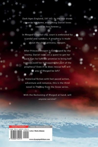 Dark Ages England, 597 AD. As the war draws closer to his home, everything Daniel loves could be lost forever. In Rheged's capital city, court is embroiled by scandal and rumours. A prophecy is made about the child princess, Imogen. After Princess Imogen is kidnapped by the enemy, Daniel races on a quest to get her back. Can he fulfil his promise to bring her home? Could her kidnapping be part of the prophecy? Even if he does rescue her, will any of Rheged be left? Historical fiction with fast-paced action, adventure and romance, this is the third novel in The Boy from the Snow series. With the Reckoning of Rheged at hand, will anyone survive?
