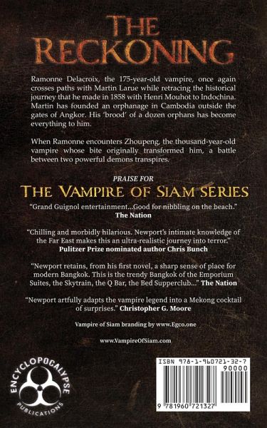 Ramonne Delacroix - the enigma. 175 year old French vampire. Resident of the kingdom of Siam and modern-day Bangkok. Murderer with countless victims. Witness to history in three centuries... Hitman. He has acquired the journals of the historic journey that he made in 1858 with Henri Mohout to Southeast Asia. Seeking the source of his powers he plans a journey back to the ancient temples of Cambodia and a fateful encounter with Zhoupeng - the mighty devil who "turned him" so many years before. Ramonne vows to put an end to his reign of evil over the poor land. Martin Larue, rich expat whose life was changed forever by his encounters with the vampire, has taken his soul-searching a step further, and with his girlfriend Areeyah, has founded an orphanage and school in Cambodia. He rescued 12 orphans from a life of scraping through a giant rubbish heap outside Phnom Penh and took them to the hamlet of Siam Reap, outside the gates of the ancient temples of Angkor Wat. His 'brood' as Martin calls them, have become everything to him. However, Martin learns there is a serial killer in the area - preying on the native's superstitions and beheading its victims. Martin is horrified by the news as the killer's recent activities are cantered right where his school/orphanage is located. Ramonne arrives in Cambodia. Martin is relieved he's there - he needs a saviour. The battle between two powerful demons is a battle with dire consequences for the world. Zhoupeng, now not only drinks the blood of his victims but he has learned through studies of the ancient Khmer sorcerers texts, to consume their souls - allowing him to grow incredibly strong. His evil reign will soon know no bounds. If he is to defeat him, Ramonne must eventually rely on the sacrifice of 'one with ultimate innocence' - One of Martin's children must die...