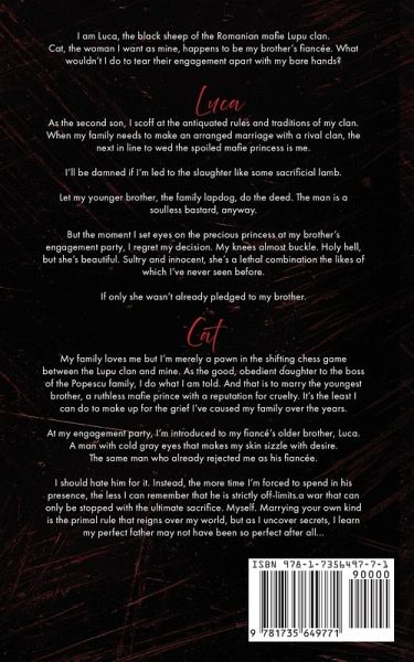 The woman I want happens to be my brother's fiancée... Luca I am Luca, the black sheep of the Lupu clan. As the second son, I scoff at the antiquated rules and traditions of my clan. When my family needs to make an arranged marriage with a rival clan, the next in line to wed the spoiled princess is me. I'll be damned if I'm led to the slaughter like some sacrificial lamb. Let my younger brother, the family lapdog, do the deed. The man is a soulless bastard, anyway. But the moment I set eyes on the precious princess at my brother's engagement party, I regret my decision. My knees almost buckle.…mehr