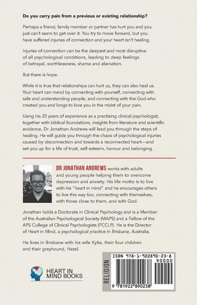 Do you carry pain from a previous or existing relationship? Perhaps a friend, family member or partner has hurt you and you just can't seem to get over it. You try to move forward, but you have suffered injuries of connection and your heart isn't healing. Injuries of connection can be the deepest and most disruptive of all psychological conditions, leading to deep feelings of betrayal, worthlessness, shame and alienation. But there is hope. While it is true that relationships can hurt us, they can also heal us. Your heart can mend by connecting with yourself, connecting with safe and understanding people, and connecting with the God who created you and longs to love you in the midst of your pain. Using his 20 years of experience as a practising Clinical Psychologist, together biblical foundations, insights from literature and scientific evidence, Dr Jonathan Andrews will lead you through the steps of healing. He will guide you through the pain of psychological injuries caused by disconnection and towards a reconnected heart - and set you up for a life of trust, self-esteem, honour and belonging.