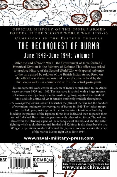 This monumental work covers all aspects of India's contribution to the Allied cause between 1939 and 1945. The narrative is packed with a huge amount of information regarding even the smallest fighting, logistical and medical units and sub-units, and yet it remains eminently readable throughout. The Reconquest of Burma Volume 1 describes the plans of the war and the conduct of operations leading to the reconquest of Burma in 1945. The Indian troops were called upon, first to protect the north-eastern frontiers of India by blocking the progress of the Japanese forces into India, and then to punch them out of India and Burma in co-operation with other Allied forces. The volume also covers the planning aspect of the reconquest of Burma, and also the bitter fighting which took place around Imphal and Kohima. It also describes the two Wingate expeditions conducted behind the Japanese lines and carries the story of the war in Burma right up to June 1944.