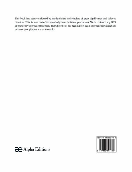 This book has been considered by academicians and scholars of great significance and value to literature. This forms a part of the knowledge base for future generations. We have represented this book in the same form as it was first published. Hence any marks seen are left intentionally to preserve its true nature.