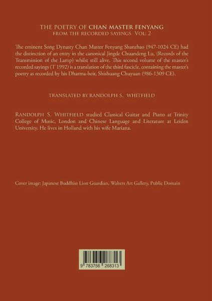 The eminent Song Dynasty Chan Master Fenyang Shanzhao (947-1024 CE) had the distinction of an entry in the canonical Jingde Chuandeng Lu, (Records of the Transmission of the Lamp) whilst still alive. This second volume of the master's recorded sayings (T 1992) is a translation of the third fascicle, containing the master's poetry as recorded by his Dharma-heir, Shishuang Chuyuan (986-1309 CE).