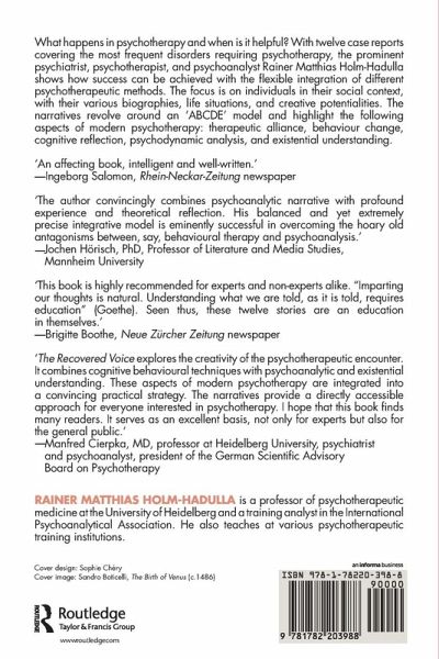 What happens in psychotherapy and when is it helpful? With twelve case reports covering the most frequent disorders requiring psychotherapy, the prominent psychiatrist, psychotherapist, and psychoanalyst Rainer Matthias Holm-Hadulla shows how success can be achieved with the flexible integration of different psychotherapeutic methods. The focus is on individuals in their social context, with their various biographies, life situations, and creative potentialities. The narratives revolve around an 'ABCDE' model and highlight the following aspects of modern psychotherapy: therapeutic alliance, behaviour change, cognitive reflection, psychodynamic analysis, and existential understanding.
