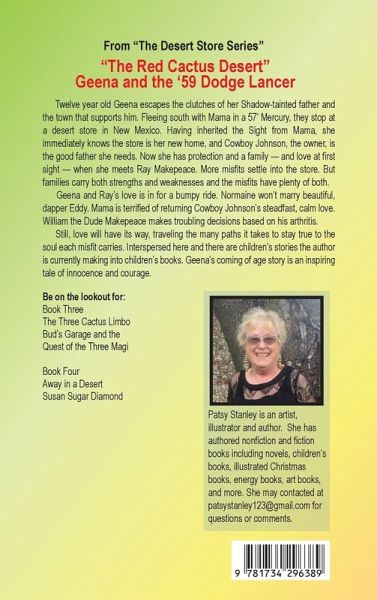 Twelve year old Geena escapes the clutches of her Shadow-tainted father and the town that supports him. Fleeing south with Mama in a 57' Mercury, they stop at a desert store in New Mexico. Having inherited the Sight from Mama, she immediately knows the store is her new home, and Cowboy Johnson, the owner, is the good father she needs. Now she has protection and a family - and love at first sight - when she meets Ray Makepeace. More misfits settle into the store. But families carry both strengths and weaknesses and the misfits have plenty of both. Geena and Ray's love is in for a bumpy ride. Normaine won't marry beautiful, dapper Eddy. Mama is terrified of returning Cowboy Johnson's steadfast, calm love. William the Dude Makepeace makes troubling decisions based on his arthritis. till, love will have its way, traveling the many paths it takes to stay true to the soul each misfit carries. Geena's coming of age story is an inspiring tale of innocence and courage.