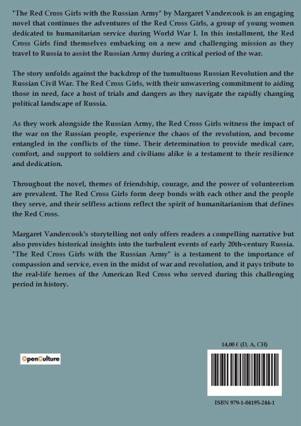 "The Red Cross Girls with the Russian Army" by Margaret Vandercook is an engaging novel that continues the adventures of the Red Cross Girls, a group of young women dedicated to humanitarian service during World War I. In this installment, the Red Cross Girls find themselves embarking on a new and challenging mission as they travel to Russia to assist the Russian Army during a critical period of the war. The story unfolds against the backdrop of the tumultuous Russian Revolution and the Russian Civil War. The Red Cross Girls, with their unwavering commitment to aiding those in need, face a host of trials and dangers as they navigate the rapidly changing political landscape of Russia. As they work alongside the Russian Army, the Red Cross Girls witness the impact of the war on the Russian people, experience the chaos of the revolution, and become entangled in the conflicts of the time. Their determination to provide medical care, comfort, and support to soldiers and civilians alike is a testament to their resilience and dedication. Throughout the novel, themes of friendship, courage, and the power of volunteerism are prevalent. The Red Cross Girls form deep bonds with each other and the people they serve, and their selfless actions reflect the spirit of humanitarianism that defines the Red Cross. Margaret Vandercook's storytelling not only offers readers a compelling narrative but also provides historical insights into the turbulent events of early 20th-century Russia. "The Red Cross Girls with the Russian Army" is a testament to the importance of compassion and service, even in the midst of war and revolution, and it pays tribute to the real-life heroes of the American Red Cross who served during this challenging period in history.