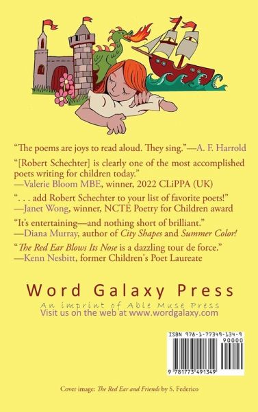 The Red Ear Blows Its Nose is "a dazzling tour de force" (Kenn Nesbitt). Often hilarious, always thoughtful, this debut collection from award-winning poet Robert Schechter proves that he is "clearly one of the most accomplished poets writing for children today" (Valerie Bloom MBE). Complemented by S. Federico's charming illustrations, The Red Ear Blows Its Nose will delight both children and adults alike, and is destined to become a classic, standing alongside A Child's Garden of Verses, Now We Are Six, and Where the Sidewalk Ends on children's and library bookshelves for years to come. PRAISE FOR THE RED EAR BLOWS ITS NOSE: Short, punchy, and clever poems, as if Shel Silverstein and Ogden Nash had a baby. Some are only two lines long. My favorite: "When livestock salesmen cannot sleep, / do they lie in bed discounting sheep?" Wow! -Jane Yolen, author of the How Do Dinosaurs books What a splendid collection of poetry. Here are poems that fizz with imagination, wisdom, and an infectious exuberance at the sheer wonder of words. Beautifully crafted and terrifically funny, this is a book for children (and grown-ups) to return to again and again. -Kate Wakeling, winner, 2017 CLiPPA (UK) You'll feel like a "cool in-the-know one" when you read Robert Schechter's clever collection of poems. This book will open your mind up to a world where foxes cartwheel through trombones, a horse might choose to moo, and you can dive into a lake filled with yellow puffs of popcorn. Children who are reading (and thinking) beyond their age level will love it; you will, too. If you're a fan of John Ciardi and Richard Wilbur and X. J. Kennedy, or Jack Prelutsky and J. Patrick Lewis and Kenn Nesbitt, you'll want to add Robert Schechter to your list of favorite poets! -Janet Wong, winner of the 2021 NCTE Award for Excellence in Poetry for Children The Red Ear Blows Its Nose is a dazzling tour de force of ingenious poems that sparkle with Schechter's witty, wonderful wordplay. Read this book. Your brain will thank you. Mine did. -Kenn Nesbitt, former Children's Poet Laureate (2013-15) Robert Schechter's poems sing with irrepressible joy. His humor, wit, and verbal dexterity make The Red Ear Blows Its Nose a book that both children and adults will want to read over and over and over again. He is clearly one of the most accomplished poets writing for children today. -Valerie Bloom MBE, winner, 2022 CLiPPA (UK) Schechter's The Red Ear Blows Its Nose is a masterful collection from a masterful poet. Not only does every poem take you somewhere new, spinning ideas and jokes and thoughts and dreams and facts and observations on the tip of its finger like a Harlem Globetrotter at a showing-off convention, but it does so with such surefootedness, such deft rhythm and rhyme, that the poems are joys to read aloud. They sing themselves out of your mouth and will stick in the minds of kids and grown-ups everywhere they get heard. Schechter, it seems to me, is way up there with the great American kids' poets, a real Shel Silverstein for today's generation. -A. F. Harrold It's entertaining-sometimes hilarious, sometimes beautiful, always thought-provoking-and nothing short of brilliant. -Diana Murray, author of City Shapes, Summer Color! and the Unicorn Day series