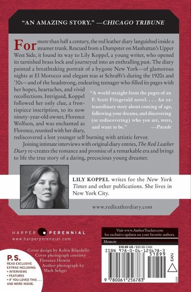 "A world straight from the pages of an F. Scott Fitzgerald novel. . . . An extraordinary story about coming of age, following your dreams and discovering (or rediscovering) who you are, were and want to be." -- Parade Rescued from a Dumpster on the Upper West Side of Manhattan, a discarded diary brings to life the glamorous, forgotten world of an extraordinary young woman Opening the tarnished brass lock of a red leather diary found in the basement of a New York City apartment building, New York Times writer Lily Koppel embarked on a journey into the past. Compelled by the hopes and heartaches captured in the pages, Koppel set out to find the diary's owner, a 90-year old woman named Florence. Eventually reunited with her diary, Florence ventured back to the girl she once was, rediscovering a lost self that burned with artistic fervor. Joining intimate interviews with original diary entries, The Red Leather Diary is an evocative and entrancing work that recreates the romance and glitter, sophistication and promise, of 1930s New York, bringing to life the true story of a precocious young woman who dared to follow her dreams.