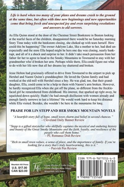 Life is hard when too many of your plans and dreams crash to the ground at the same time, but often, with time, new beginnings and new opportunities come that bring fresh and unexpected joy and even surprising resolutions and answers to old sorrows. As Ella Quinn stood at the door of the Chestnut Street Bookstore in Boston looking at the tearful faces of the children, disappointed there would be no Saturday morning Story Time today with the bookstore closing, she choked up with tears herself. How could this be happening? The owner Adelynn Lake, like a mother to her, had died unexpectedly and the store Ella hoped might be hers one day was closing, nearly bankrupt, and all of it a shock and surprise to her. It didn't take much persuasion from her father for her to agree to head to the Smoky Mountains to Townsend to stay with her grandmother who'd broken her arm. Perhaps while there, Ella could figure out what to do with her life now that all her dreams lay shattered and broken. Jesse Helton had graciously offered to drive from Townsend to the airport to pick up Hershel and Naomi Quinn's granddaughter. He loved the Quinn family and had worked at the old mill with Hershel since a boy. He was glad, too, that their granddaughter, Ella, could come to be a help to them with Naomi's arm broken. However, he hardly recognized Ella when she got off the plane, so different from the freckle-faced girl he remembered from childhood. His interest, that sparked up right away, he squelched down quickly. Hadn't he had enough disillusion with women already and enough family sorrows to last a lifetime? He would work hard to keep his distance while Ella visited. Besides, she wouldn't be here in the mountains for long. PRAISE FOR LIN STEPP AND HER SMOKY MOUNTAIN NOVELS "A heartfelt story full of hope, small town charm and belief in second chances." - Cleveland Daily Banner Review "Stepp is a gifted storyteller who skillfully captures the mystical and enduring history and beauty of the Great Smoky Mountains and the faith, loyalty, and resilience of the people who call them home." - PJ, Romance Dish Review "Rich in small town values, a sense of place, and the importance of family. If you're looking for a story that's truly heartwarming, this is it." - Peevish Pen Review "Your books take me out of the fast-paced world I live in ... I come away with a feeling of life being refreshed." - Susan Reichert, Editor in Chief, Southern Writers Magazine