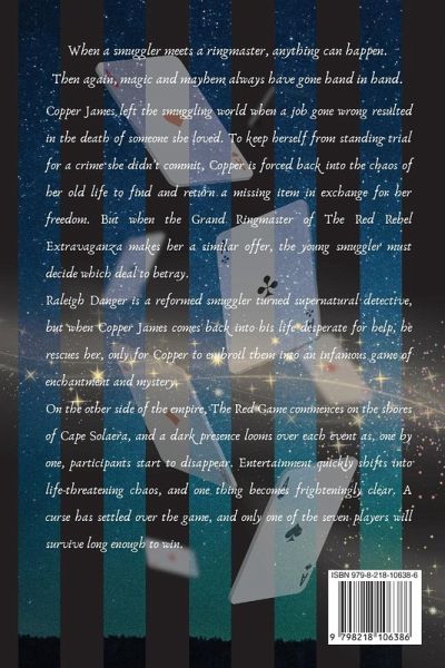 When a smuggler meets a ringmaster, anything can happen. Then again, magic and mayhem always have gone hand in hand. Copper James left the smuggling world when a job gone wrong resulted in the death of someone she loved. To keep herself from standing trial for a crime she didn't commit, Copper is forced back into the chaos of her old life to find and return a missing item in exchange for her freedom. But when the Grand Ringmaster of The Red Rebel Extravaganza makes her a similar offer, the young smuggler must decide which deal to betray. Raleigh Danger is a reformed smuggler turned supernatural detective, but when Copper James comes back into his life desperate for help, he rescues her, only for Copper to embroil them into an infamous game of enchantment and mystery. On the other side of the empire, The Red Game commences on the shores of Cape Solaera, and a dark presence looms over each event as, one by one, participants start to disappear. Entertainment quickly shifts into life-threatening chaos, and one thing becomes frighteningly clear. A curse has settled over the game, and only one of the seven players will survive long enough to win.
