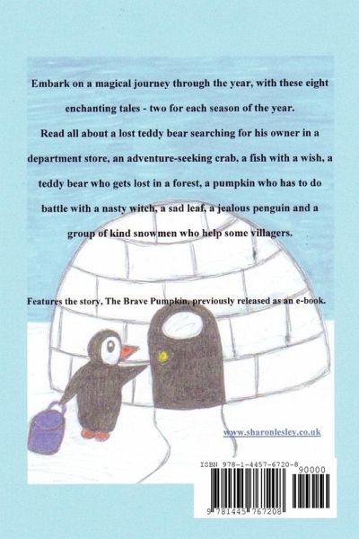 Discover eight enchanting tales, two for each season of the year. Read all about lost teddy bears, a pumpkin battling a nasty witch, a jealous penguin, a fish with a wish, helpful snowmen, a sad leaf and an adventure-seeking crab.