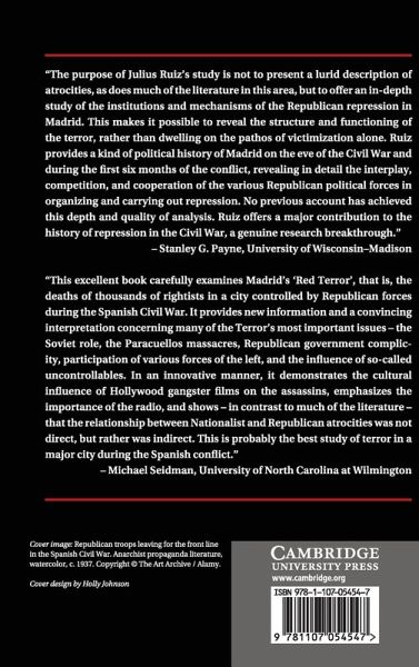 This book deals with one of most controversial issues of the Spanish Civil War (1936-9): the 'Red Terror'. Approximately 50,000 Spaniards were extrajudicially executed in Republican Spain following the failure of the military rebellion in July 1936. This mass killing of 'fascists' seriously undermined attempts by the legally constituted Republican government to present itself in foreign quarters as fighting a war for democracy. This study, based on a wealth of scholarship and archival sources, challenges the common view that executions were the work of criminal or anarchist 'uncontrollables'. Its focus is on Madrid, which witnessed at least 8,000 executions in 1936. It shows that the terror was organized and was carried out with the complicity of the police, and argues that terror was seen as integral to the antifascist war effort. Indeed, the elimination of the internal enemy - the 'Fifth Column' - was regarded as important as the war on the front line.