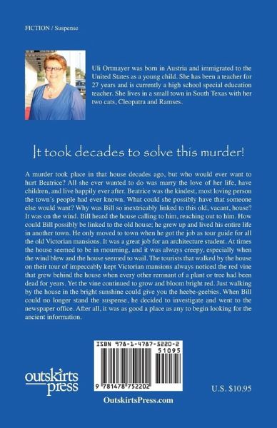 How hard can it be to solve a simple murder? True a decades old murder is certainly a very cold case. After all these years, why not leave it a cold case; everyone connected to this murder is probably dead anyway. Or are they? A murder took place in that huge old house decades ago, but who would ever want to hurt Beatrice, especially on her wedding day? All she ever wanted to do was marry the love of her life, have children, and live happily ever after. What could she possibly have had that someone else would want? Who would want to hurt her? Why was Bill so inextricably linked to this old, vacant, house? It was on the wind. Bill heard the house calling to him, reaching out to him. How could Bill possible be linked to the old house; he grew up and lived his entire life in another town. He only moved to town when he got the job as tour guide for all the old Victorian mansions. It was a great job for architecture student. At times the house seemed to be in mourning, and it was always creepy, especially when the wind blew and the house seemed to wail. The tourists that walked by the house on their tour of impeccably kept Victorian mansions always noticed the red vine that grew behind the house when every other shred of a plant or tree had been dead for years. Yet the vine continued to grow and even bloom bright red. Even walking passed that house in the day time could give you a good case of the heebe-geebies. When he could no longer stand the suspense, Bill decided to investigate and went to the newspaper office. After all it was as good a place to begin looking for ancient information as any place. The house had been empty for so long, he didn't even know who had owned it. Perhaps the newspaper office had some dusty, old files that mentioned what happened in that house. Who know that when Bill met Lisa in the newspaper office that fateful day, his life would change forever? Follow Bill and Lisa's adventures as they work to solve the age old mystery of t