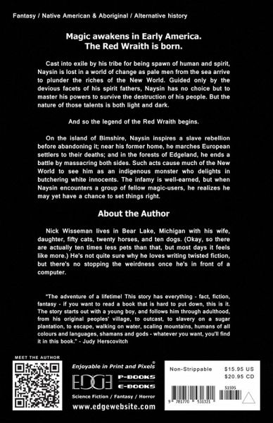 Magic awakens in early America. The Red Wraith is born. Cast into exile by his tribe for being spawn of human and spirit, Naysin is lost in a world of change as pale men from the sea arrive to plunder the riches of the New World. Guided only by the devious facets of his spirit father, Naysin has no choice but to master his powers to survive the destruction of his people. But the nature of those talents is both light and dark. And so the legend of the Red Wraith begins. On the island of Bimshire, Naysin inspires a slave rebellion before abandoning it; near his former home, he marches European settlers to their deaths; and in the forests of Edgeland, he ends a battle by massacring both sides. Such acts cause much of the New World to see him as an indigenous monster who delights in butchering white innocents. The infamy is well-earned, but when Naysin encounters a group of fellow magic-users, he realizes he may yet have a chance to set things right. He just has to conquer the only thing that ensures his survival: the dual facets of his father. --- An intriguing coming of age fantasy novel set in early American history, The Red Wraith will appeal to older young adult readers and fans of Sabaa Tahir's 'An Ember in the Ashes' and Jacqueline Carey's 'Kushiel's Legacy' series.