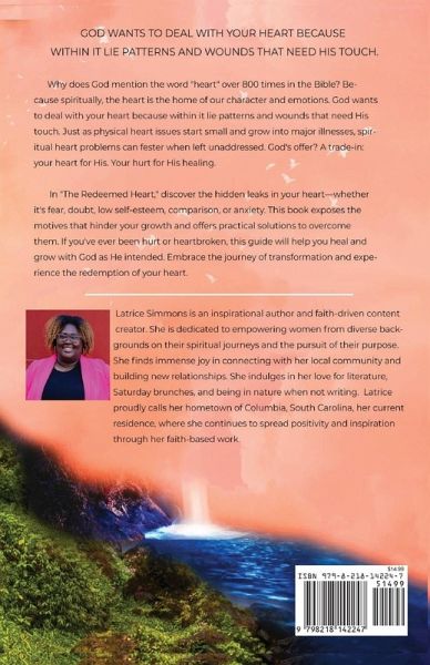 Redeemed: (adjective) Delivered, rescued, repurchased. The state of being bought back or recovered. Why does God mention the word "heart" over 800 times in the Bible? Why does God repeatedly bring the heart to our attention? Spiritually, the heart is the home of our character and emotions. God wants to deal with the heart because there are internalized patterns our hearts have adopted that need to be removed. Many of us believe we have been healed from our pasts and unhealthy behaviors but much like with physical heart failures, a spiritual heart issue appears small at first and grows into a major illness when not addressed. God wants to do a trade-in, your heart for His. Your hurt for His healing. "The Redeemed Heart" will illuminate the leaks in your heart. Whether it's fear, doubt, low self-esteem, comparison, or anxiety, it will expose those dangerous motives that lie in your heart and hinder your growth. This book gives insight into challenging your intentions and practical solutions to overcome them. If you have ever been hurt or heartbroken, this book will help you to heal and grow with God the way He intended.