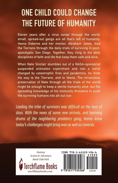 One child could change the future of humanity. Eleven years after a virus swept through the world, small, spread-out gangs are all that's left of humanity. Veena Osborne and her mentor, Abraham Jones, lead the Tierrans through the daily trials of surviving in post-apocalyptic San Diego. Together, they cling to the daily disciplines of faith and life that keep them safe and alive. When Nate Sinclair stumbles out of a NASA-sponsored suspended animation experiment and into a world changed by catastrophic fires and pandemics, he finds his way to the Tierrans, and to Veena. The miraculous preservation of Nate through all the trials of the world might be enough to keep a sterile humanity alive, but the spreading knowledge of his immunity threatens to push the surviving humans into all-out war. This apocalyptic novel is sure to entice fans of P.D. James (The Children of Men), Lauren James (The Quiet at the End of the World), and Clare Morrall (When the Floods Came) with it's vibrant characters and intense storylines.