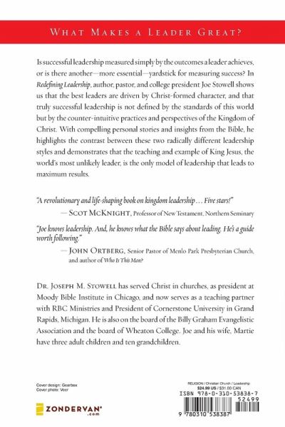 Is successful leadership measured simply by the outcomes a leader achieves, or is there another--more essential--yardstick for measuring success? In Redefining Leadership, author, pastor, and college president Joe Stowell shows us that the best leaders are driven by Christ-formed character, and that truly successful leadership is not defined by the standards of this world but by the counterintuitive practices and perspectives of the Kingdom of Christ. With compelling personal stories and insights from the Bible, he highlights the contrast between these two radically different leadership styles and demonstrates that the teaching and example of King Jesus, the world's most unlikely leader, is the only model of leadership that leads to maximum results, results that will have an eternal impact.