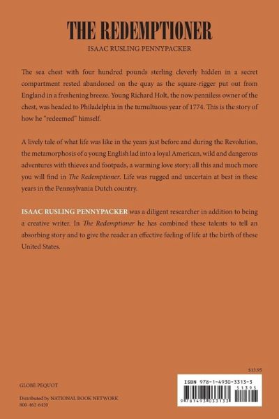 The sea chest with four hundred pounds sterling cleverly hidden in a secret compartment rested abandoned on the quay as the square-rigger put out from England in a freshening breeze. Young Richard Holt, the now penniless owner of the chest, was headed for Philadelphia in the tumultuous year of 1774, and this is the story of how he ""redeemed"" himself. A lively tale of what life was like in the years just before and during the Revolution, the metamorphosis of a young English lab into a loyal American, wild and dangerous adventures with thieves and foot-pads, a warming love story, all this and much more you will find in The Redemptioner. Life was rugged, full of danger, and uncertain at best in these years in the Pennsylvania Dutch country. The author, the late Isaac Rusling Pennypacker, was a diligent researcher in addition to being a most creative writer. In The Redemptioner he has combined these talents to tell an absorbing story and to give the reader an effective feeling of life at the birth of these United States.