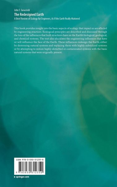 This book provides insight into the basic aspects of ecology that impact or are affected by engineering practices. Ecological principals are described and discussed through the lens of the influences that built structures have on the Earth's biological, geological, and chemical systems. The text goes on to elucidate the engineering influences that have or will influence the face of the Earth. These influences redesign the Earth, either by destroying natural systems and replacing them with highly subsidized systems or by attempting to restore highly disturbed or contaminated systems with the basic natural systems that were originally present.