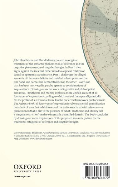 How do language and thought connect to things in the world? John Hawthorne and David Manley offer an original and ambitious treatment of the semantic phenomenon of reference and the cognitive phenomenon of singular thought, leading to a new unified account of definite and indefinite descriptions, names, and demonstratives.